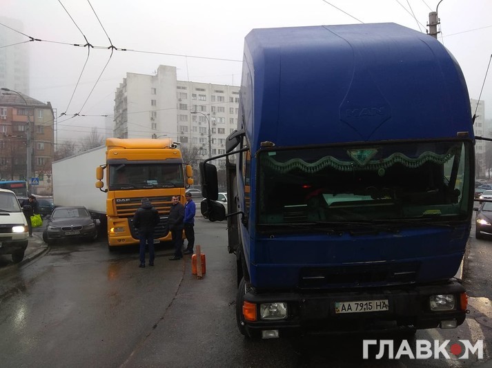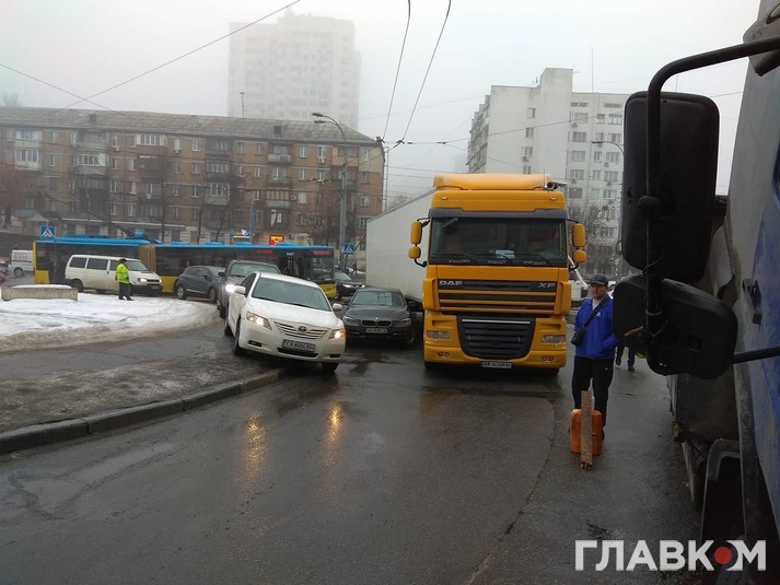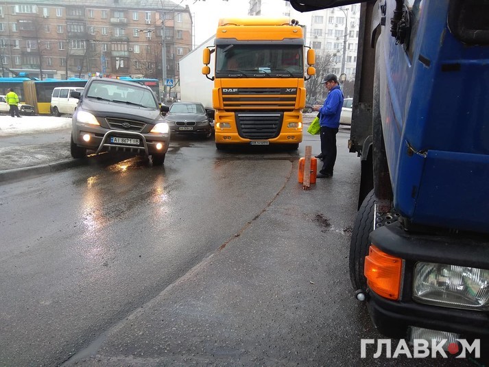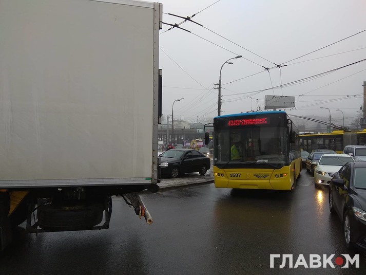 Як повідомляє кореспондент «Главкома», аварія трапилася на заїзді на міст з вулиці Вадима Гетьмана на вул. Борщагівську.