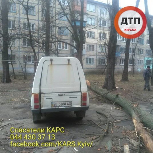 За даними dtp.kiev.ua, у Дніпровському районі по вул. Сулеймана Стальського 10 впало дерево, трохи подряпавши машину. На місце приїхали рятувальники, які прибрали дерево. Також на місце прибули представники ЖЕКу 408 і поліція.