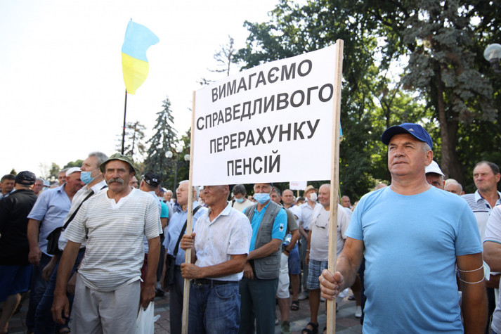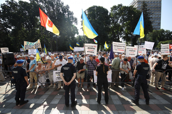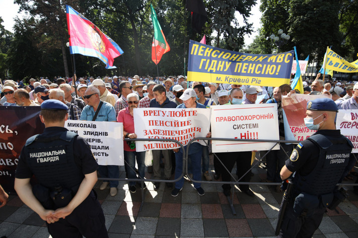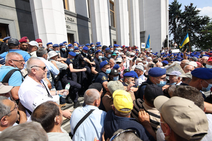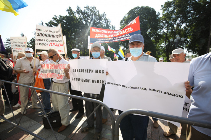 Під стінами парламенту триває масова акція протесту ветеранів силових структур. Вони вимагають невідкладного перерахунку пенсій.