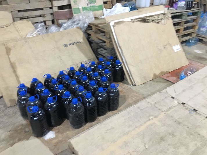 Так, у ході обшуків складських приміщень, які використовувались для виготовлення та збуту контрафакту, вилучено сировину у вигляді спиртовмісної рідини загальним об’ємом близько 20 тонн, обладнання, пластикову тару.
