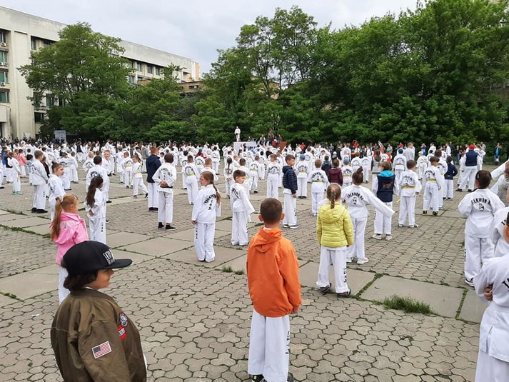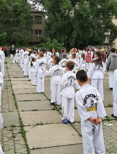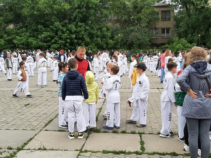 У неділю, 30 травня, на площі перед спорткомплексом КПІ в Києві відбувся оригінальний флешмоб з таеквон-до. Близько пів тисячі учасників синхронно виконували однакові рухи. Про цю подію повідомив на своїй сторінці у Facebook журналіст Сергій Панченко, син якого взяв участь у флешмобі.