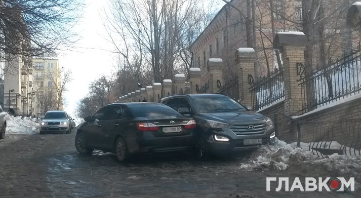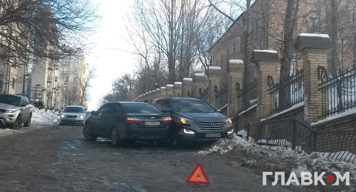 Сьогодні вранці в центрі Києва сталася дорожньо-транспортна пригода. На підйомі вулиці Шовковичної, напроти Олександрівської лікарні, зіткнулися два автомобілі.