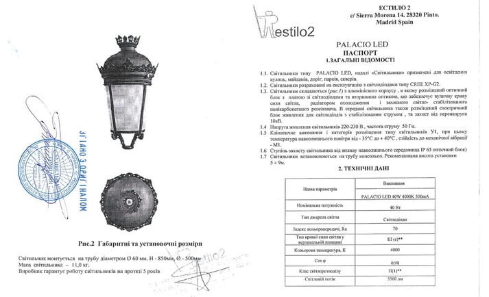 Оприлюднено документи, згідно з якими встановлені ліхтарі нібито іспанського виробництва, а не китайського