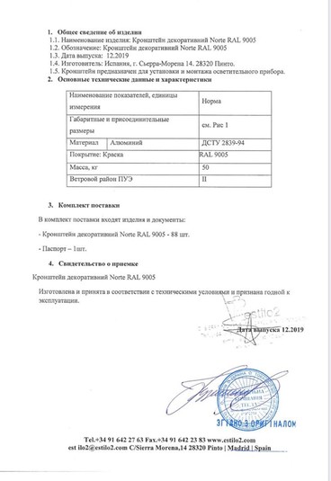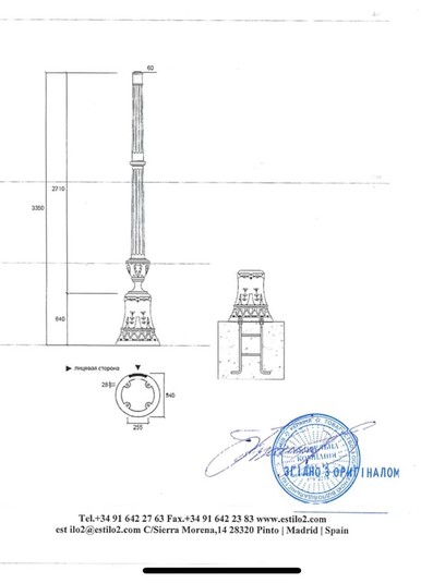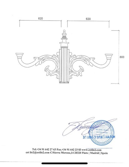 Декоративні опори DHU-08 3.35m купили по 44 174 грн, світильники Palacio 40W 4000K 500mA – по 13 085 грн, а декоративні кронштейни Norte – по 8 756 грн. Отже, ліхтар з одним світильником коштує 57 259 грн, а з двома на кронштейні – 79 100 грн.