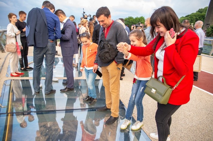 Що стосується захисної плівки на скляних елементах мосту, яка постраждала від вандалів, то її найближчим часом замінять на шар захисного суперброньованого скла. Скляні елементи на мосту, зазначив мер, залишаться. Вони абсолютно безпечні.