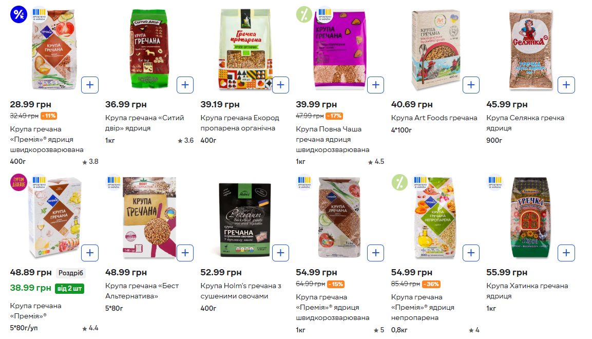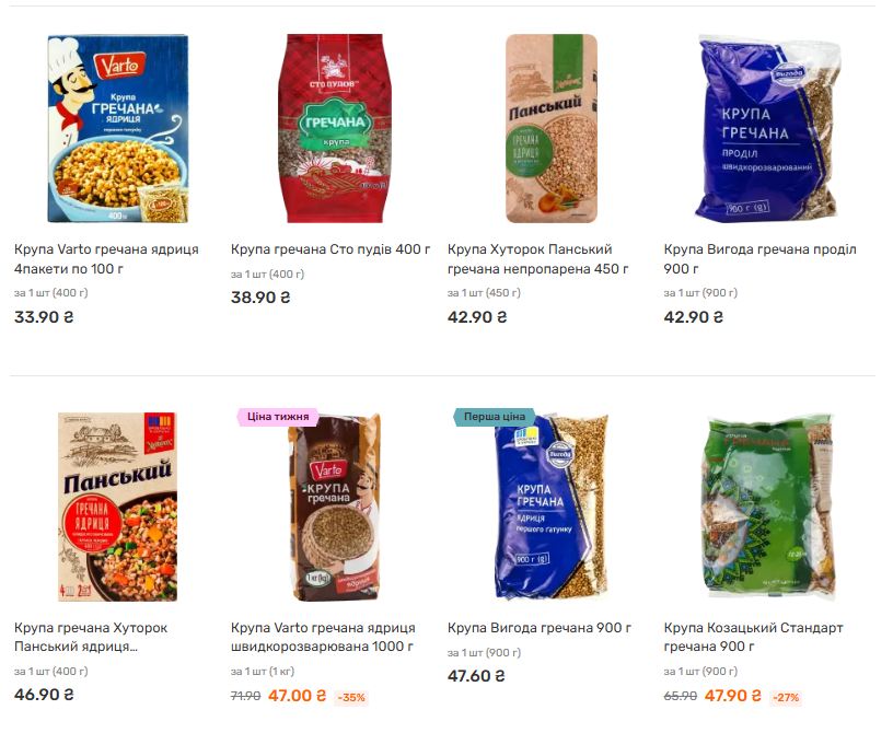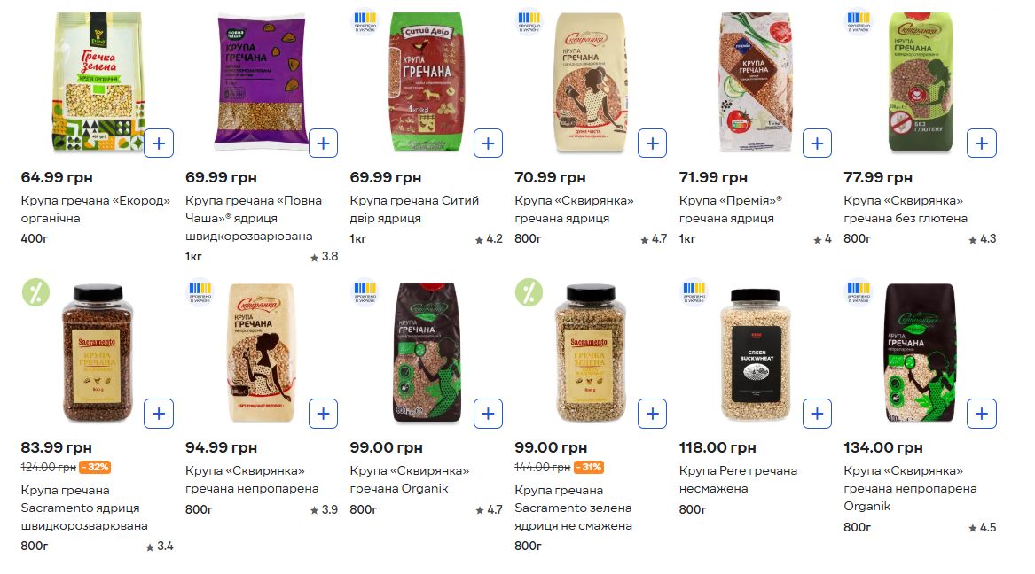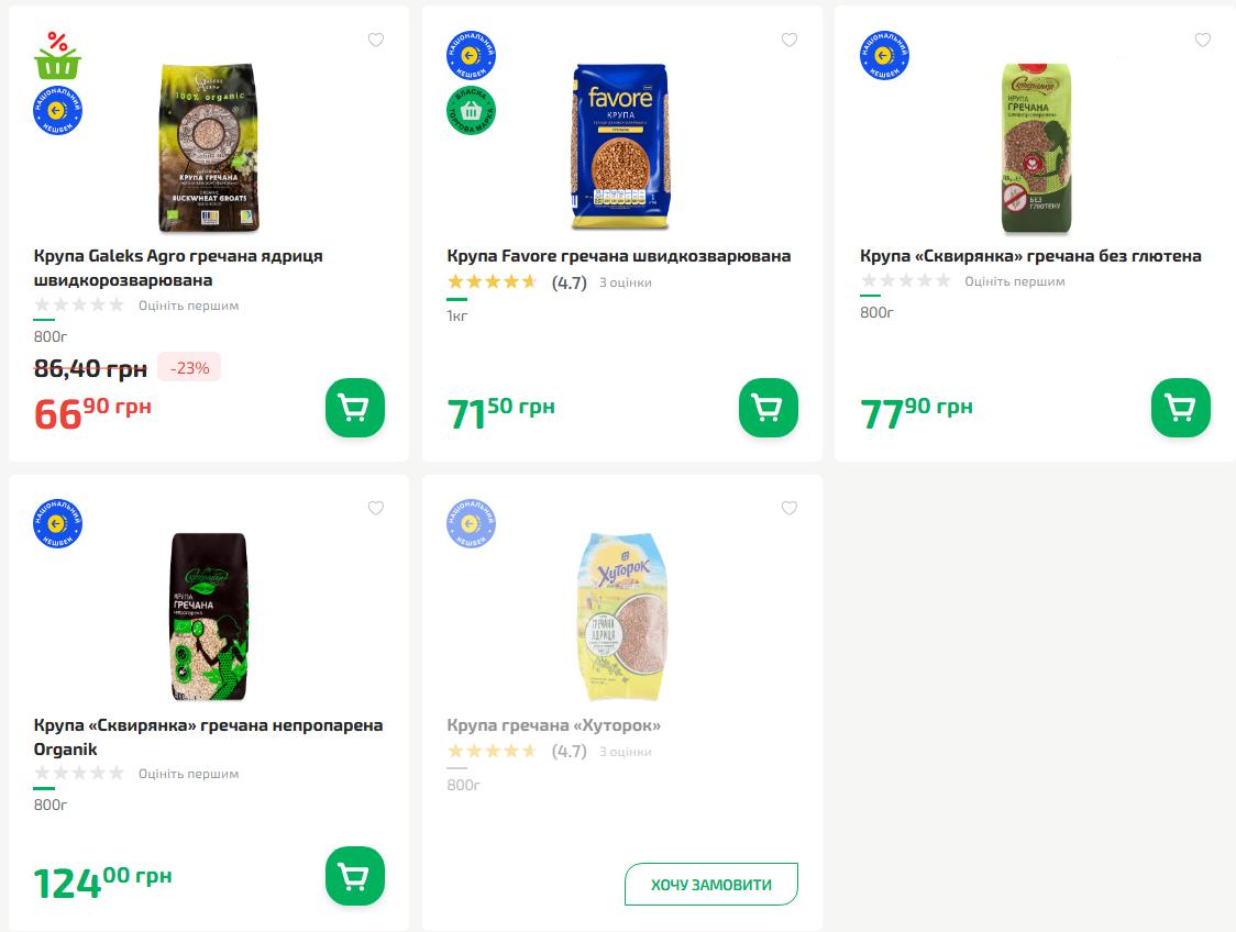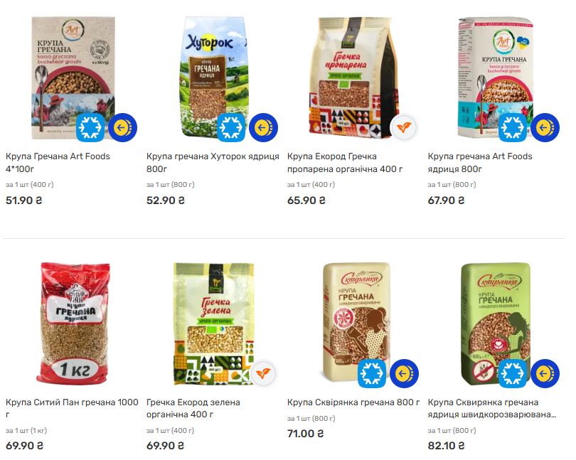 - Крупа «Ситий двір» (ядриця) – 36.99 грн та 69.99 грн.