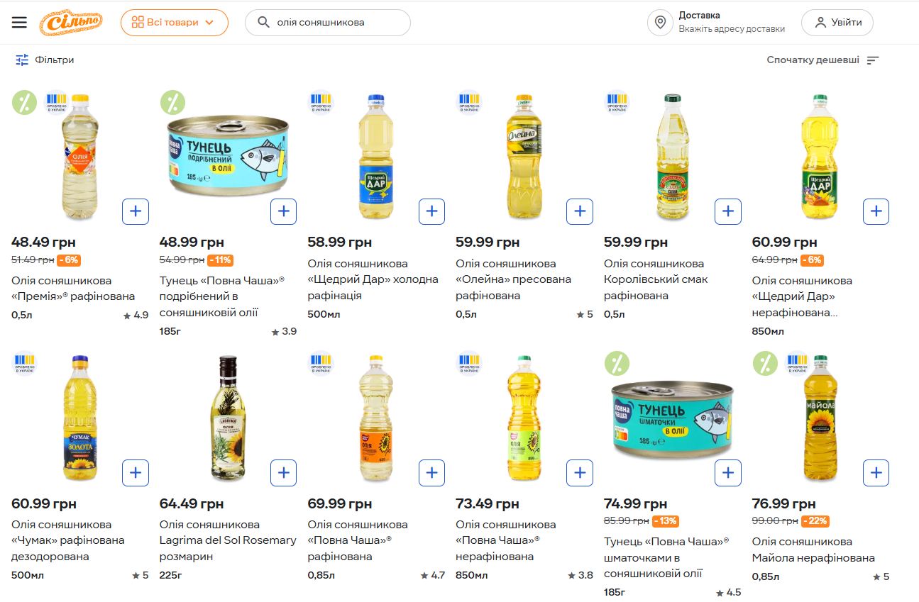 - Олія салатна (500 мл) – 94,99 ₴