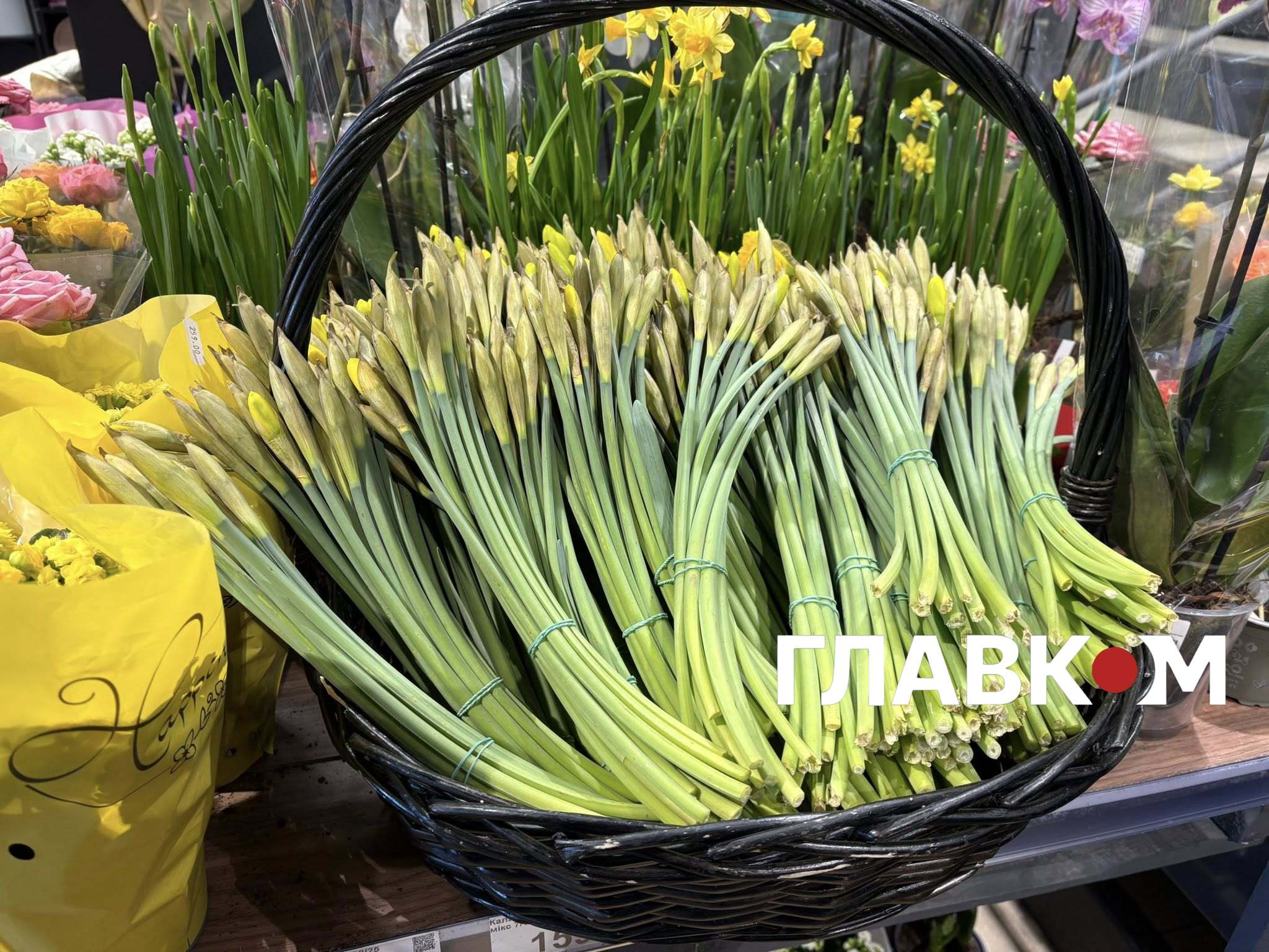Супермаркети «Сільпо» пропонують пучок нарцисів від місцевих фермерів за 99 грн. А квіткові крамниці крамницях переважно стоять вже зформовані букети та троянди. Тюльпанів відчутео менше, ніж на базарі.