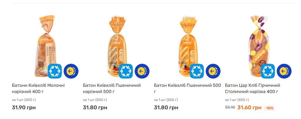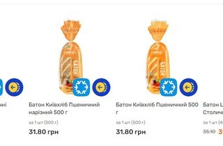 | Батон білого хліба | 32,00 грн за шт | 32,00 |