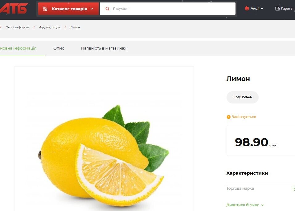 | Лимон, 0,2 кг | 98,90 грн за кг | 19,78 |