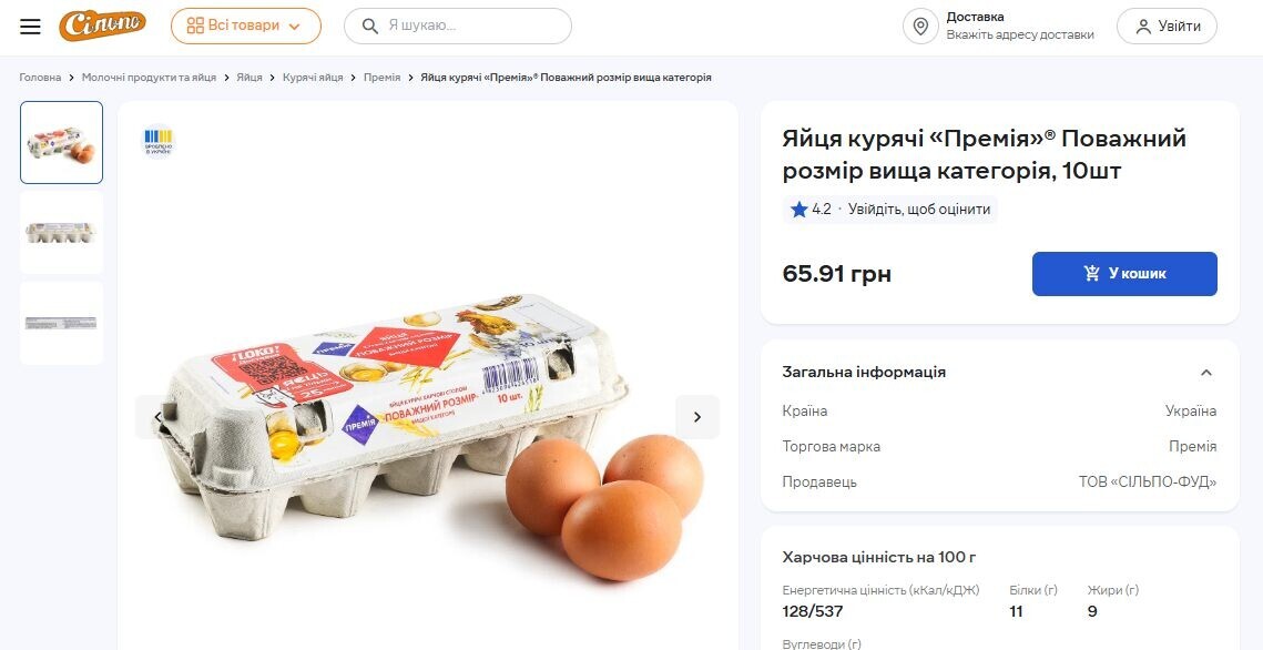 | Яйця курячі, 6 шт. | 65,90 за дес. | 39,54 |