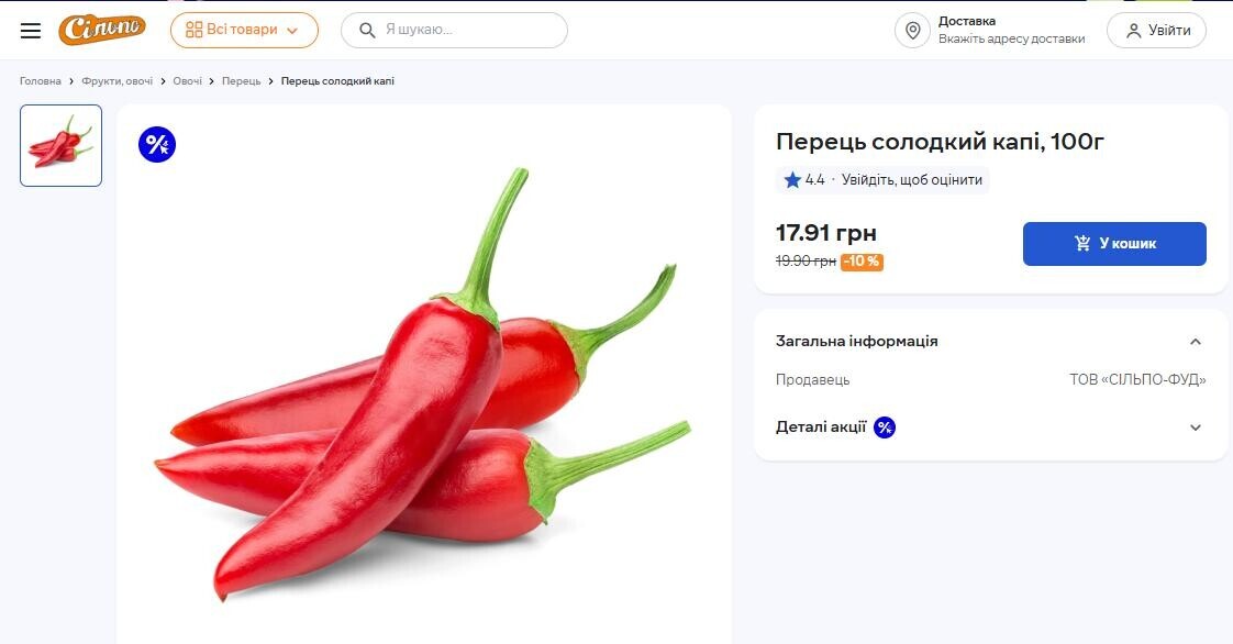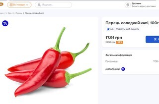 | Перець солодкий 0,5 кг | 179,10 грн за кг | 89,55 |