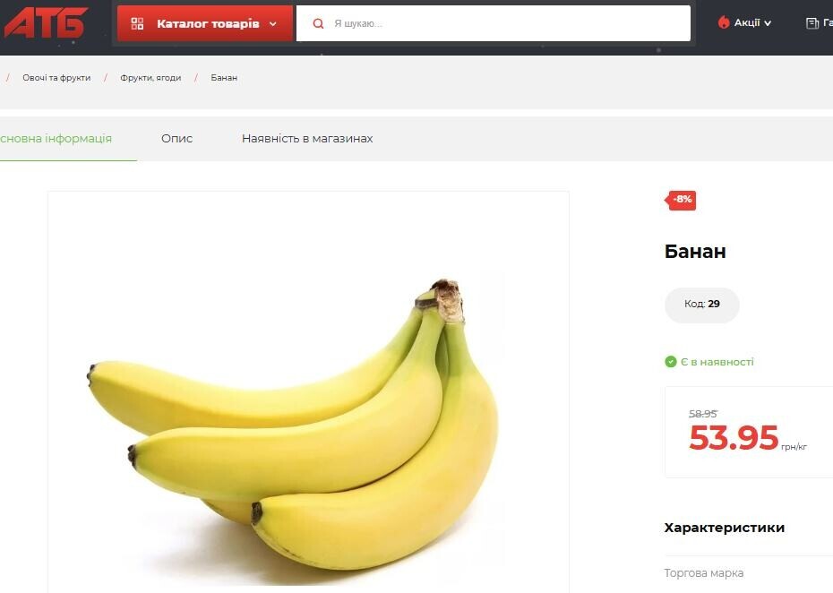 | Банани, 1 кг | 54 грн за кг | 54,00 |