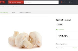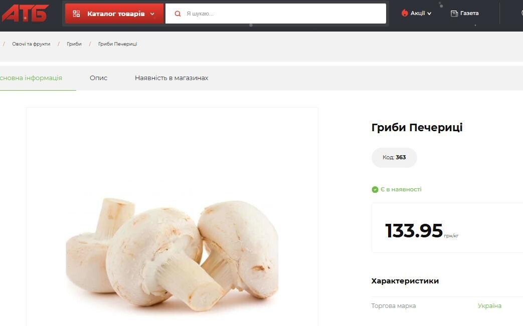 | Гриби печериці, 1 кг | 133,95 грн за кг | 133,95 |