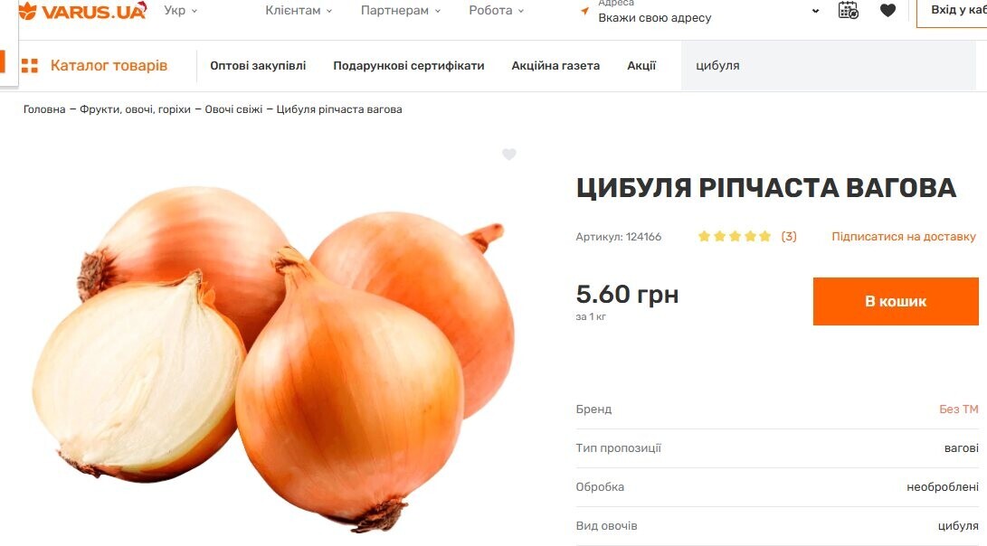 | Цибуля, 0,2 кг | 5,60 грн за кг |