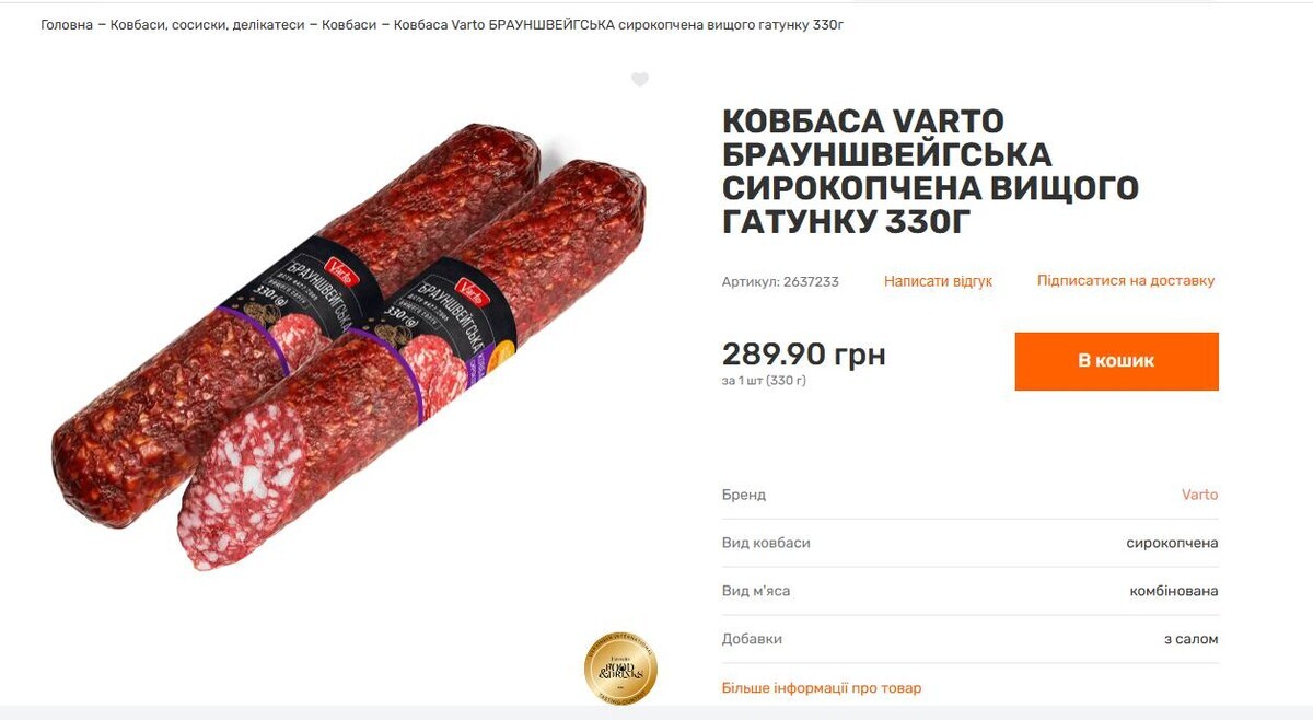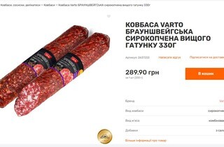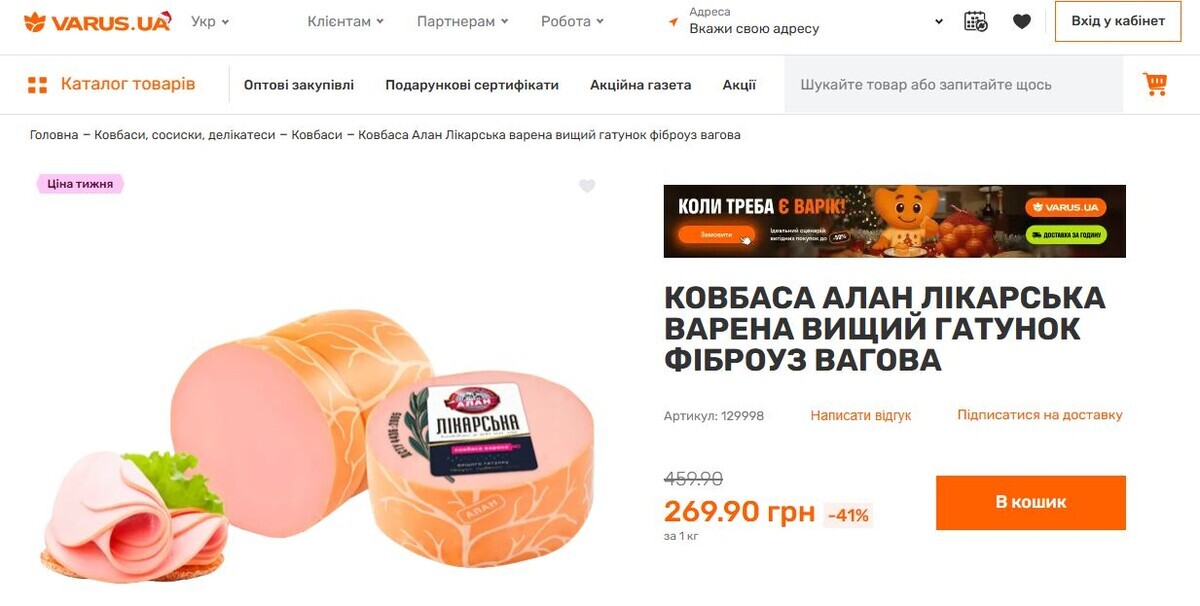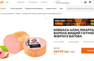 | Ковбаса варена «Лікарська», 0,5 кг | 269,90 грн за кг | 134,95 |