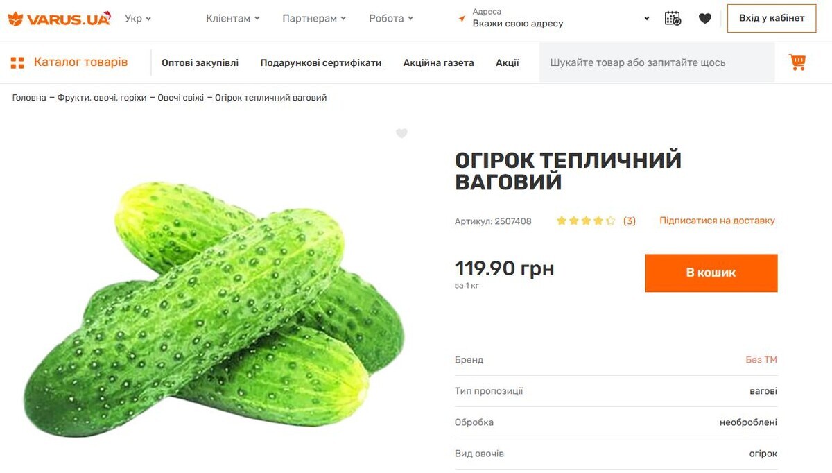 | Огірки свіжі, 0,5 кг | 119,90 грн за кг | 59,95 |