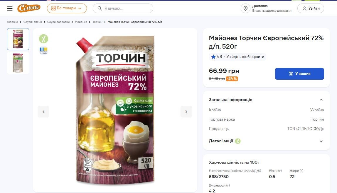 | Майонез: 0,35 кг для салату Олів'є і 0,17кг для «Оселедця під шубою» | 66,99 грн за уп. 520 гр | 66,99 |