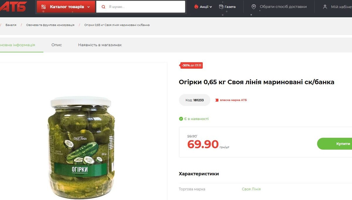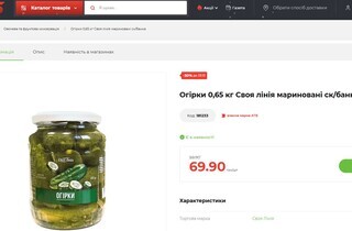 | Огірки консервовані, 0,2 кг | 69,90 грн за банку |