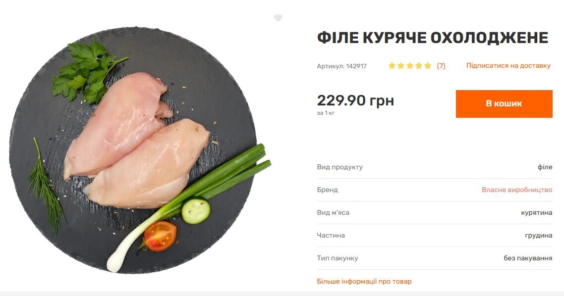 | Філе куряче свіже, 1 кг | 229,90 грн за кг | 229,90 |