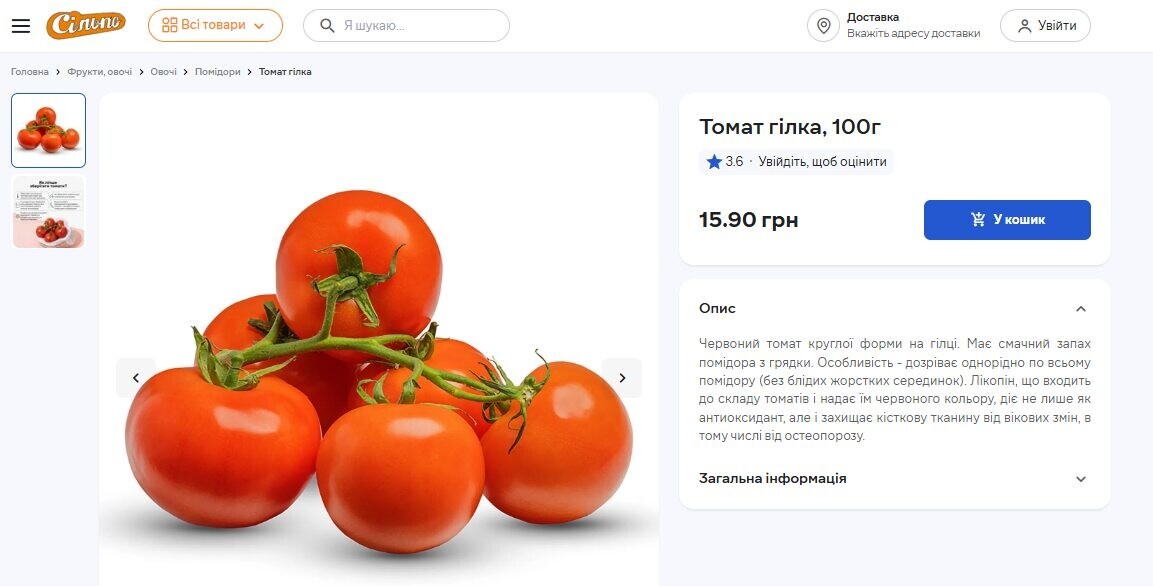 | Помідори свіжі, 1 кг | 159,90 за кг | 159,90 |