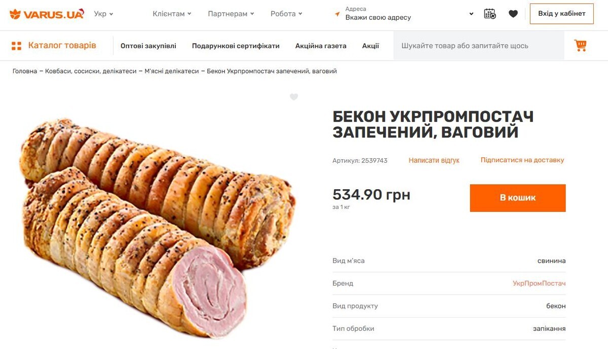 | Бекон запечений, 0,5 кг | 534,90 грн за кг | 267,45 |