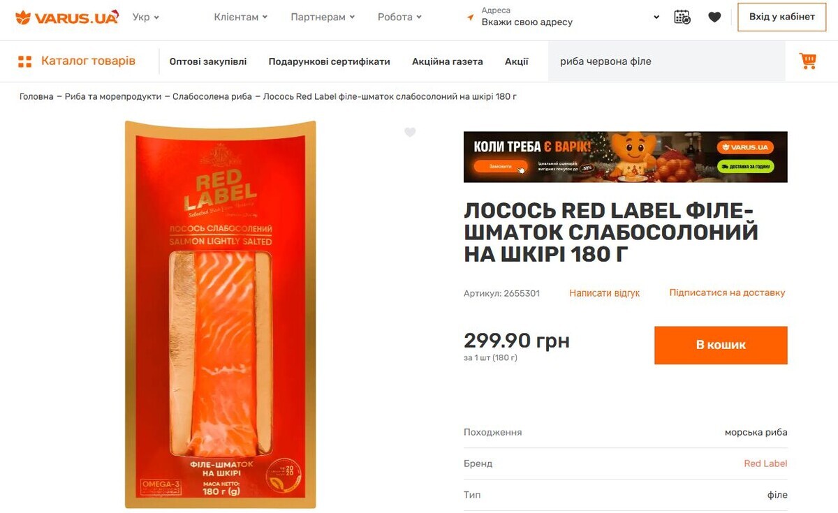 Тим, хто не уявляє свята без морепродуктів, доведеться витратитися на баночку червоної ікри, яка коштує від 430 грн за 100 гр, а шматок філе червоної риби вагою 180 г затягне близько 300 грн.
