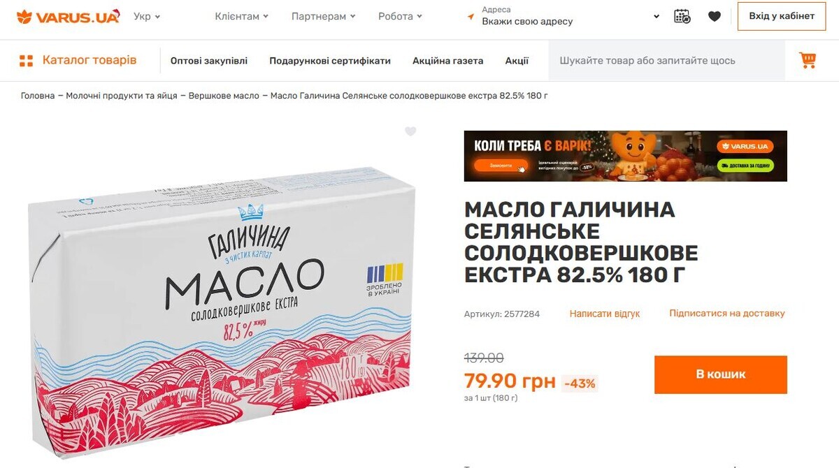 | Масло вершкове, пачка 0,2 кг | 79,90 | 79,90 |
