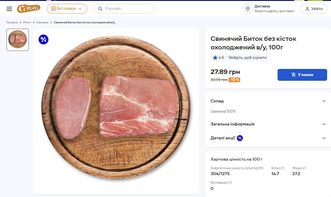 | Биток зі свинини свіжий, 1 кг | 279 грн за кг |