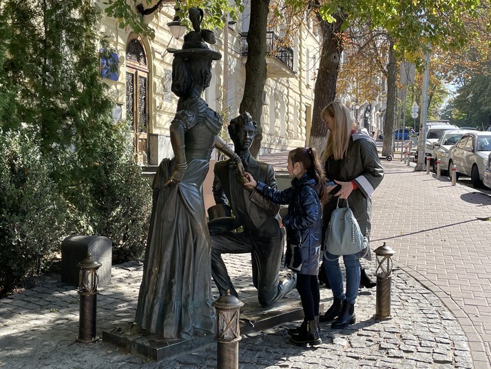 Щоб почути фрази з україномовного фільму, потрібно підійти до пам’ятника та потерти його на удачу.