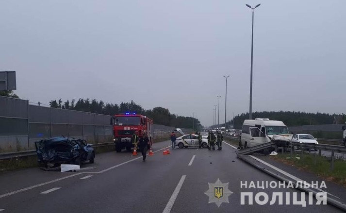 На місці ДТП працюють слідчо-оперативна група, працівники Слідчого управління поліції Київщини, медики, рятувальники.
