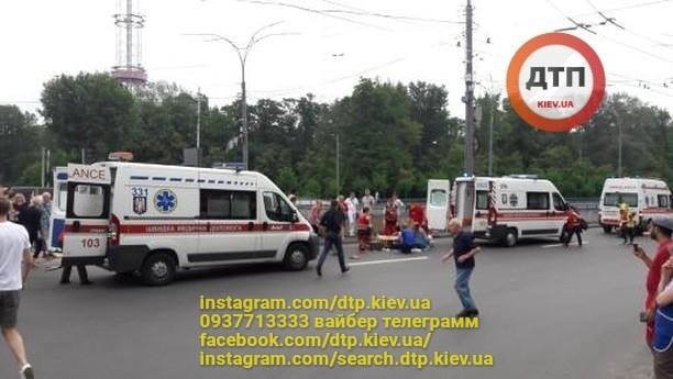Своєю чергою «Київ оперативний» інформує, що сталося зіткнення автомобілів Nissan і Renault. В результаті аварії Renault відкинуло на пішохідну зону. «У цей час там перебували люди. На жаль, за попередньою інформацією, один пішохід загинув на місці, ще кілька людей госпіталізували», - йдеться в повідомленні.