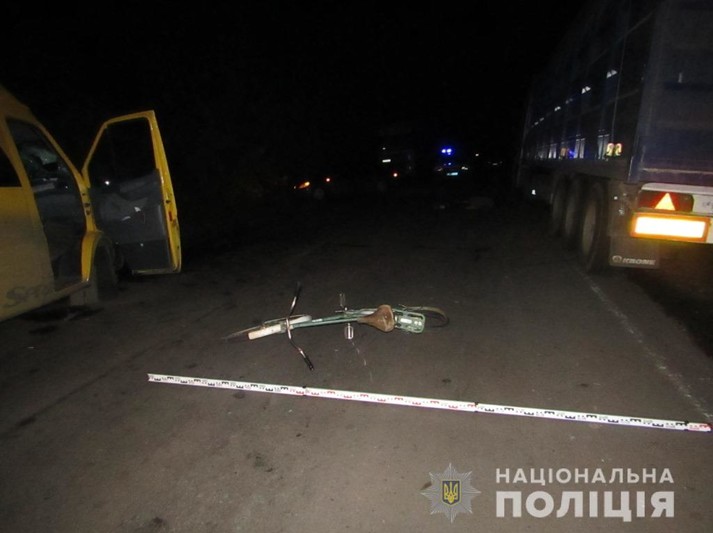 У результаті аварії велосипедист від отриманих травм загинув на місці події. Особа загиблого поки що не встановлена. Потерпілий чоловік віком близько 45 років, зріст 180 см, повної статури, був одягнений в чорні спортивні штани, темно-зелену кофту та чорні черевики.