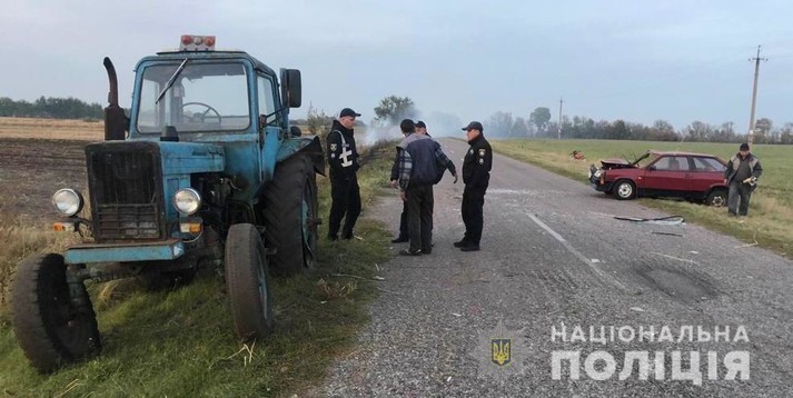 У м. Васильків водій у стані алкогольного сп’яніння (1,63 проміле), при виїзді з міста допустив зіткнення з трактором, який рухався у попутному напрямку тією ж смугою. Від сильного удару автівку перекинуло, пасажирка отримала тяжкі травми. Зараз вона перебуває в реанімації Васильківської центральної районної лікарні.