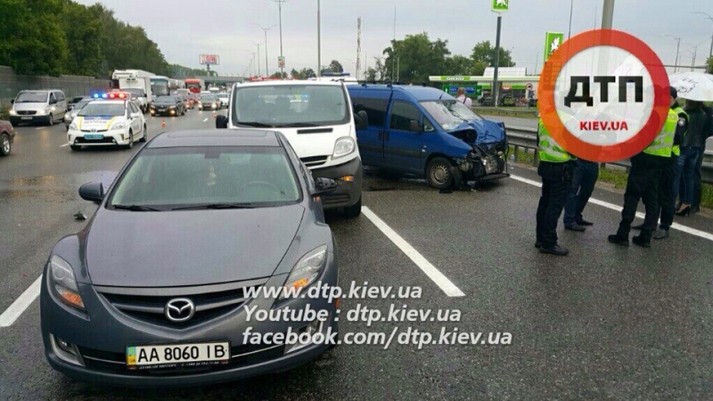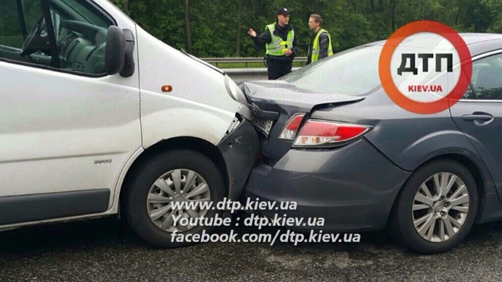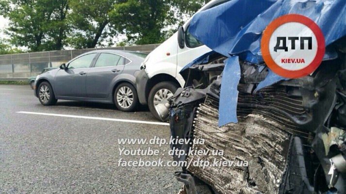 За попередніми даними, прямуючи в бік Києва, фура підрізала легковий автомобіль Мазда, через що водій зробив екстрене гальмування.