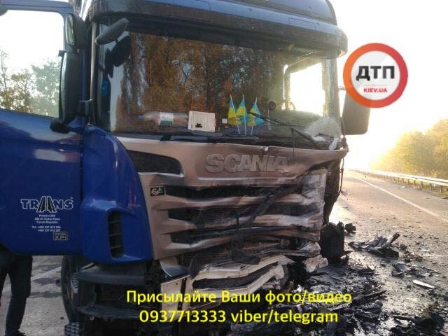 Як повідомляє dtp.kiev.ua, сталося зіткнення легкового автомобіля Volkswagen і вантажівки Skania
