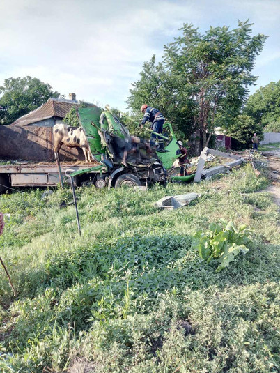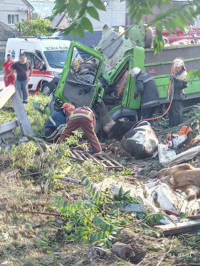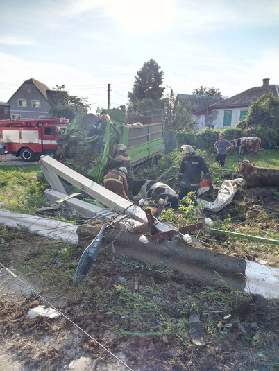 По прибуттю на місце виклику було встановлено, що під час руху водій вантажного автомобіля, який перевозив рогату худобу, не впорався з керуванням автомобілем та здійснив зіткнення з опорою електромережі.