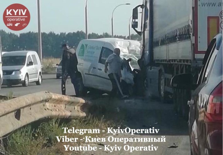 Аварія трапилася поблизу із розворотом на Требухів. Про це повідомляється на сторінці спільноти «Київ оперативний» у Facebook.