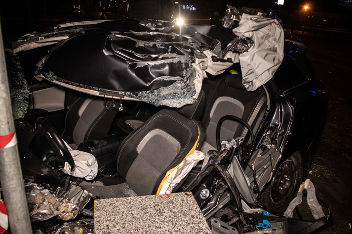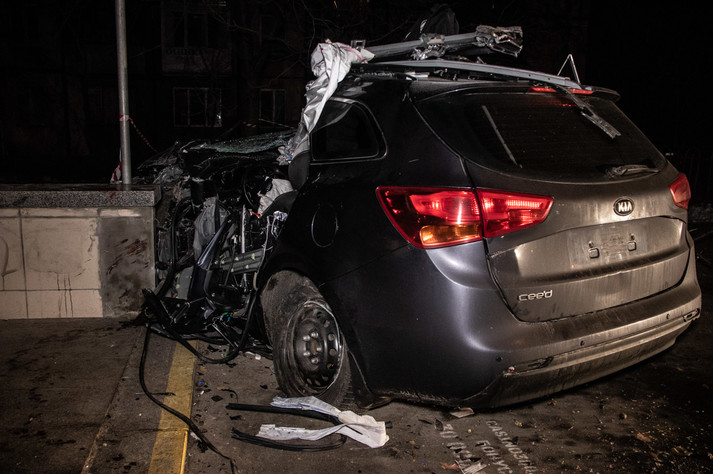 Зупинилось авто лише після зіткнення зі стінкою підземки. Удар прийшовся як раз у водійське місце, тож керманич був затиснений у понівеченому автомобілі.
