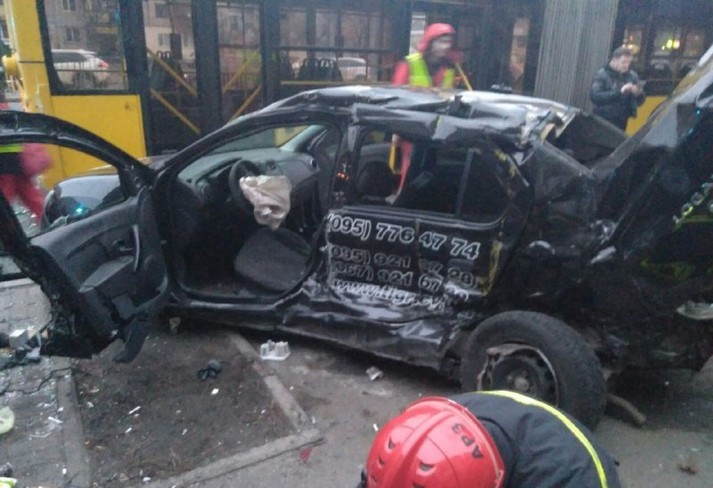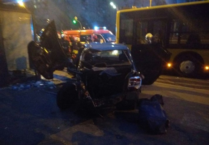 Смертельна ДТП у Києві: автівка влетіла в зупинку транспорту (фото, відео)