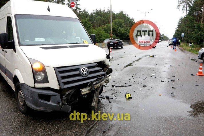 Volkswagen повертав ліворуч на Газопровідну, а Chevrolet їхав прямо від КП Гостомель. Після удару по дотичній водій Chevrolet втратив контроль над автівкою і машина взяла праворуч, збила і відкинула у кювет дівчину, яка стояла під парасолькою на зупинці громадського транспорту.