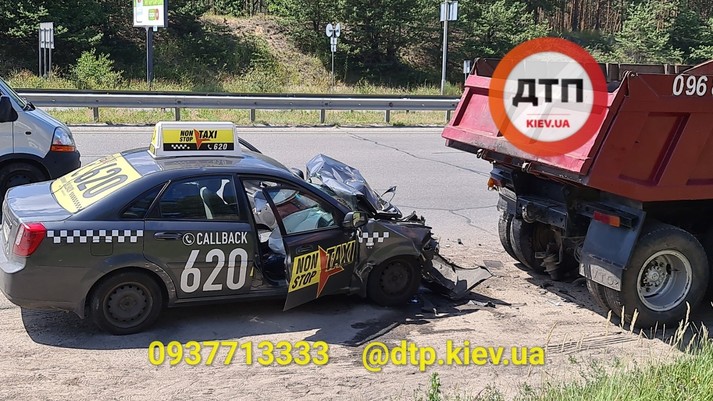 Водій автомобіля служби таксі Non stop на величезній швидкості в'їхав у припарковану на узбіччі вантажівку.