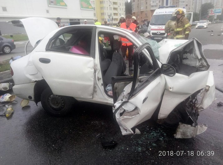 Тіла водія та пасажирки автомобіля Daewoo, які загинули внаслідок зіткнення з автомобілем Mercedes сьогодні вранці на вул. Саперно-Слобідській у Києві, було заблоковано між приладовою панеллю та сидіннями автівки. Про це повідомила прес-служба Головного управління ДСНС у Києві.