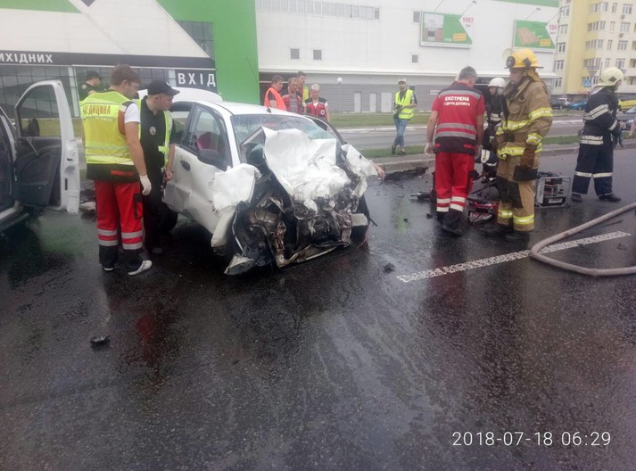 Поліцейські встановили, що 28-річний водій Mercedes, рухаючись зі сторони проспекту Бажана, виїхав на смугу зустрічного руху, де здійснив зіткнення з Daewoo.