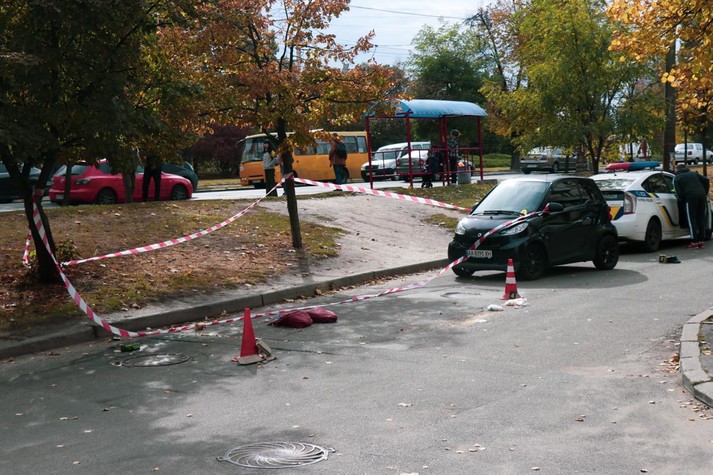 За словами водія, він рухався по прибудинковій дорозі і збирався виїхати на Голосіївський проспект. В цей час літній чоловік вийшов на зупинці і став переходити дорогу прямо перед Smart, не залишивши шансів власнику транспортного засобу. Очевидці стверджують, що удар був не сильним, але чоловік впав і вдарився головою об асфальт. Навколо розкидало пакети з крупою, цукерками і кагором, які він ніс додому.