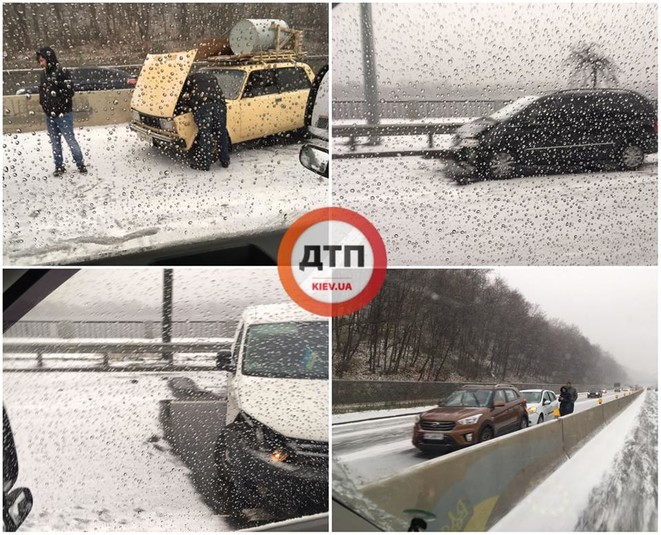 «Всього по місту з початку снігопаду понад 50 аварій, 4 з постраждалими», - повідомляє dtp.kiev.ua.