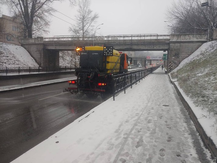 Наразі на дорогах столиці працюють 185 одиниць спецтехніки комунальної корпорації «Київавтодор» та понад 400 осіб із бригад ручного прибирання. У зв’язку із інтенсивними опадами дорожники працюватимуть цілодобово.