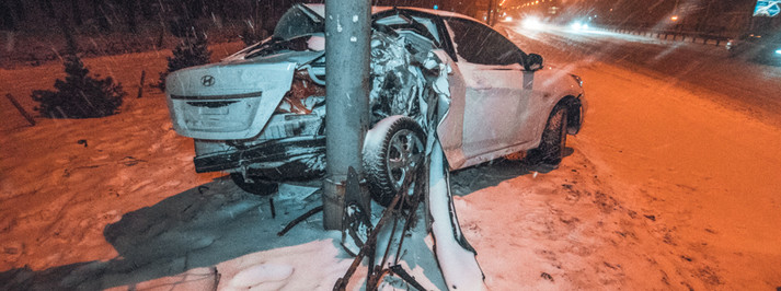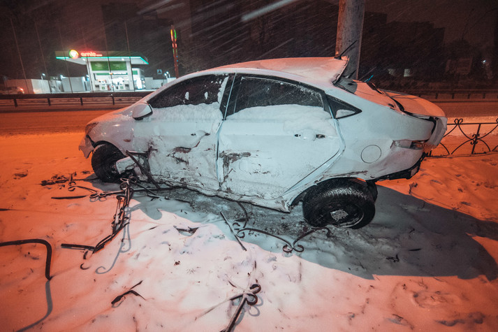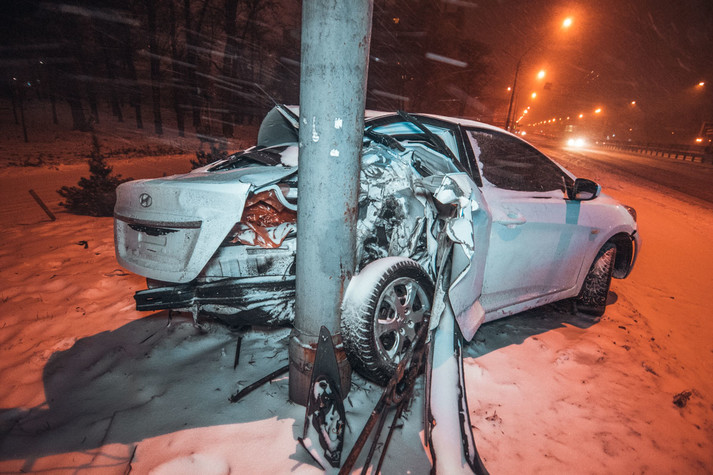 У суботу, 1 грудня, в Києві на проспекті Перемоги сталася ДТП. Автомобіль Hyundai на високій швидкості в'їхав в електроопору.