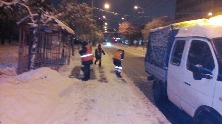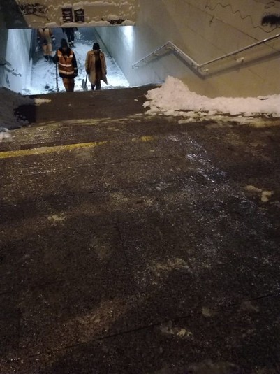 Бригади з ручного прибирання проводили обробку та прибирання від снігу сходових маршів, підходів до підземних пішохідних переходів та інших місць загального користування, на яких неможливо використання спецтехніки.