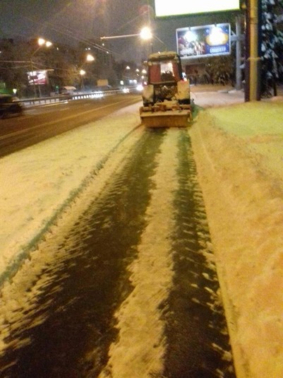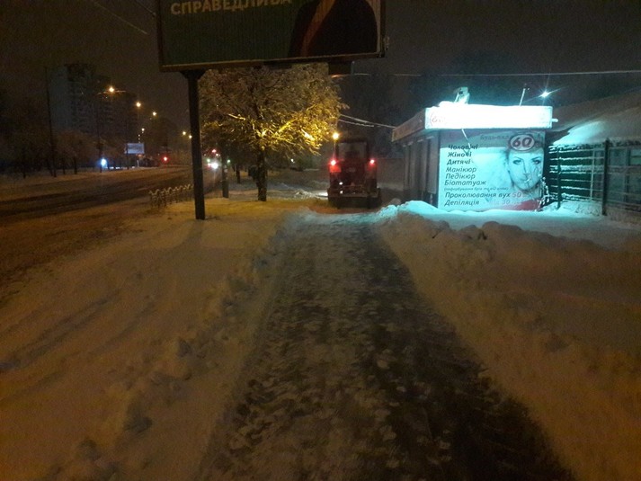 «Одночасно з прибиранням від снігу доріг тривали роботи з очищення тротуарів, наземних переходів, зупинок громадського транспорту, які обслуговуються підприємствами корпорації. До цих робіт були задіяні машини Bucher, трактори та мінінавантажувачі, у тому числі 54 одиниці нової техніки, яку «Київавтодор» закупив восени цього року», - зазначили у корпорації.